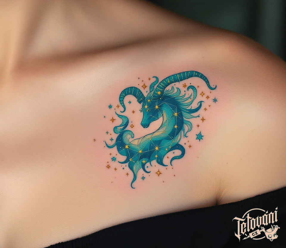 Tetování modré souhvězdí kozoroha pod klíční kostí