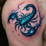 Tetování modré souhvězdí štíra, zvíře, škorpion na rameni