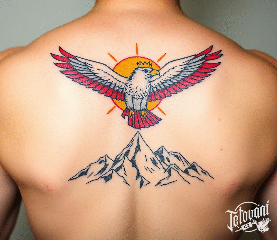 Tetování moravská orlice, hory na záda