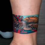 Tetování moře, želva, ryby na kotníku