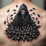 Tetování morový doktor a myši na zádech