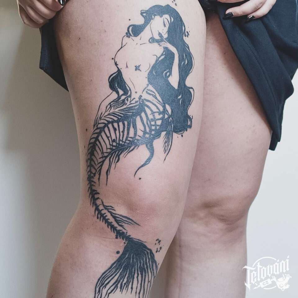 Tetování mořská panna na stehně
