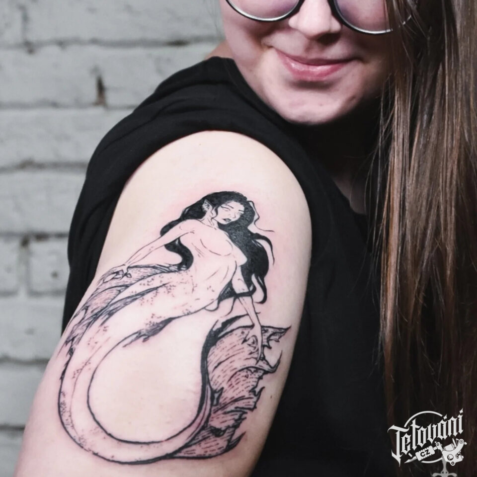Tetování mořská panna z filmů a pohádek na rameno