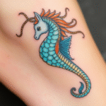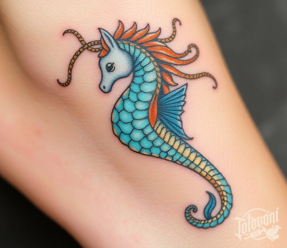 Tetování mořský koník na holeň