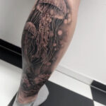 Tetování mořský svět, medúza na lýtko