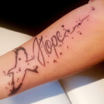 Tetování motivační nápis, motto HOPE na předloktí