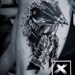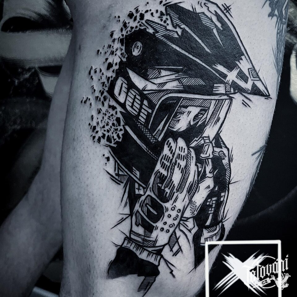 Tetování motorkář na boku stehna