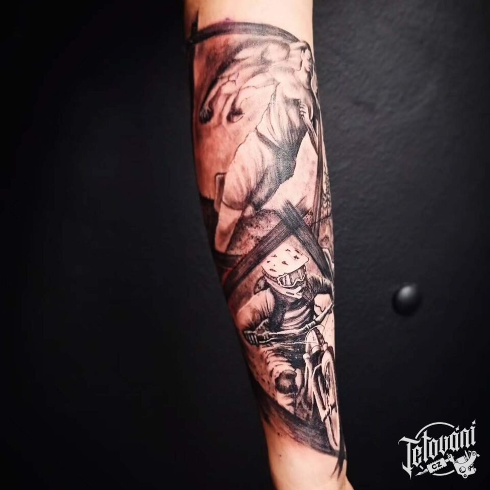 Tetování motorkář na předloktí