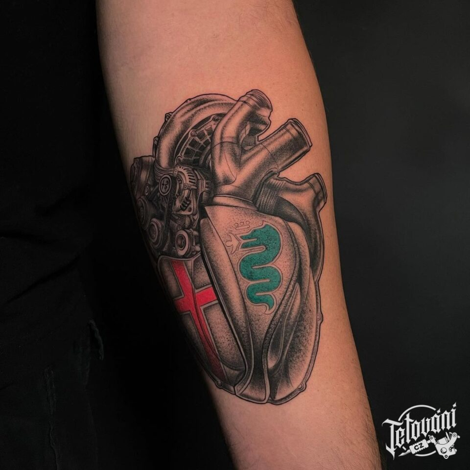 Tetování motorsport srdce alfa romeo na předlkotí