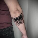 Tetování motýl a lebka na předloktí