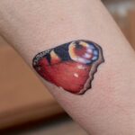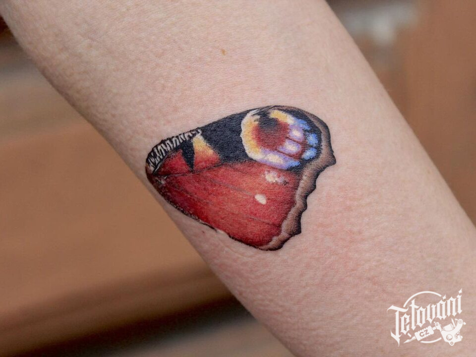 Tetování motýl, křídlo Babočky paví oko na předloktí