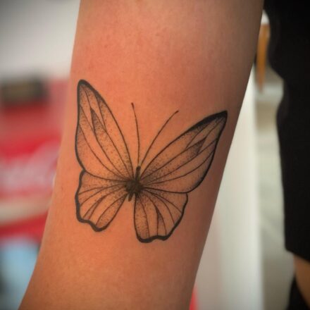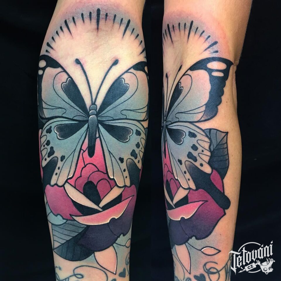 Tetování motýl, květina na předloktí