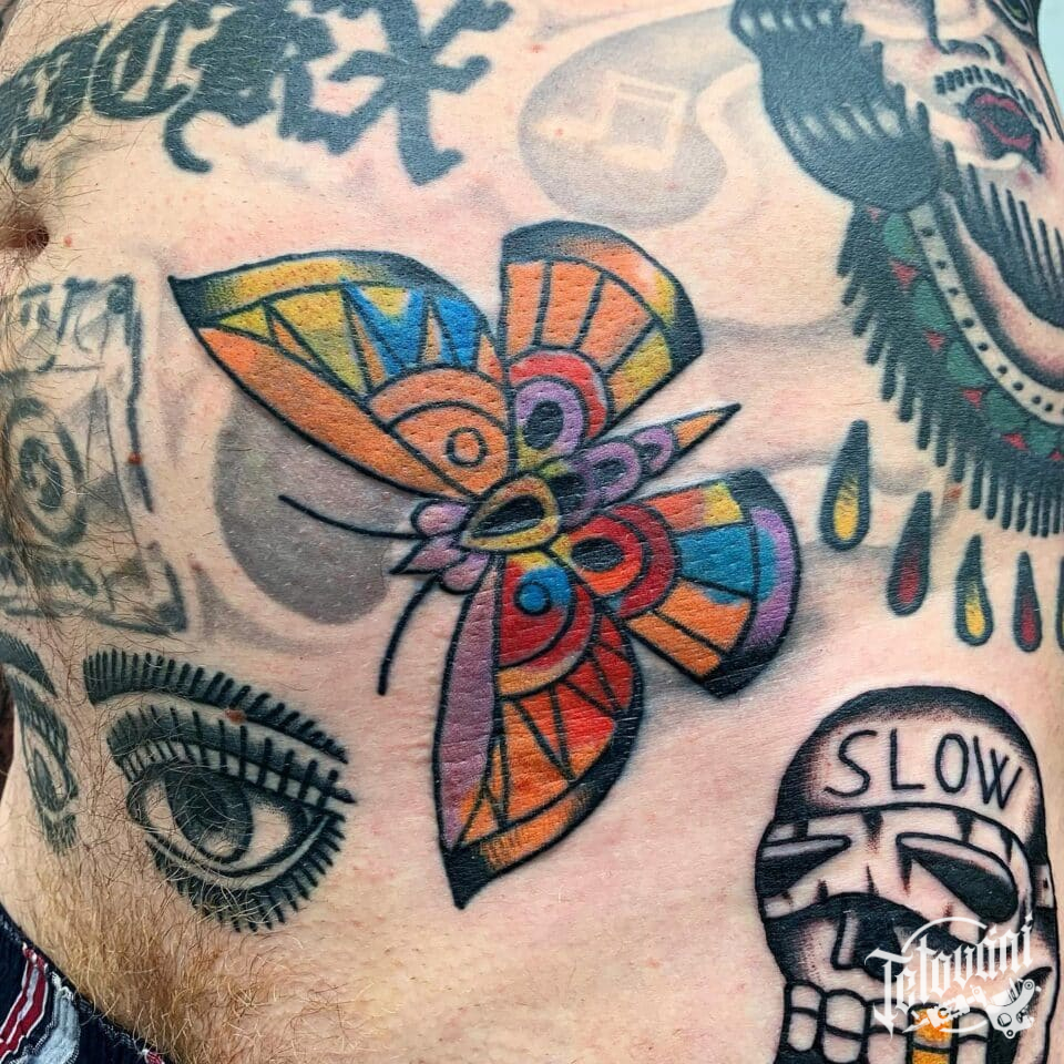 Tetování motýl na břichu