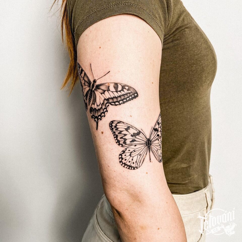 Tetování motýli na paži
