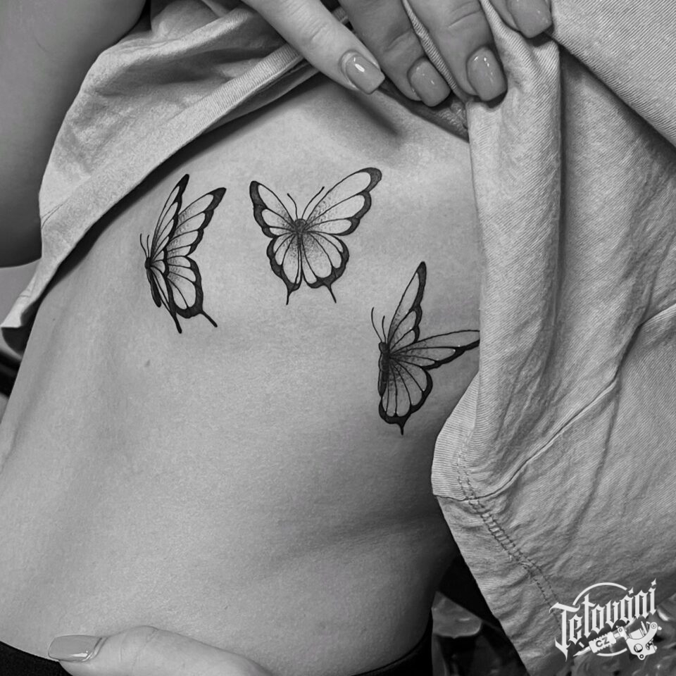 Tetování motýly, zvíře na žebra