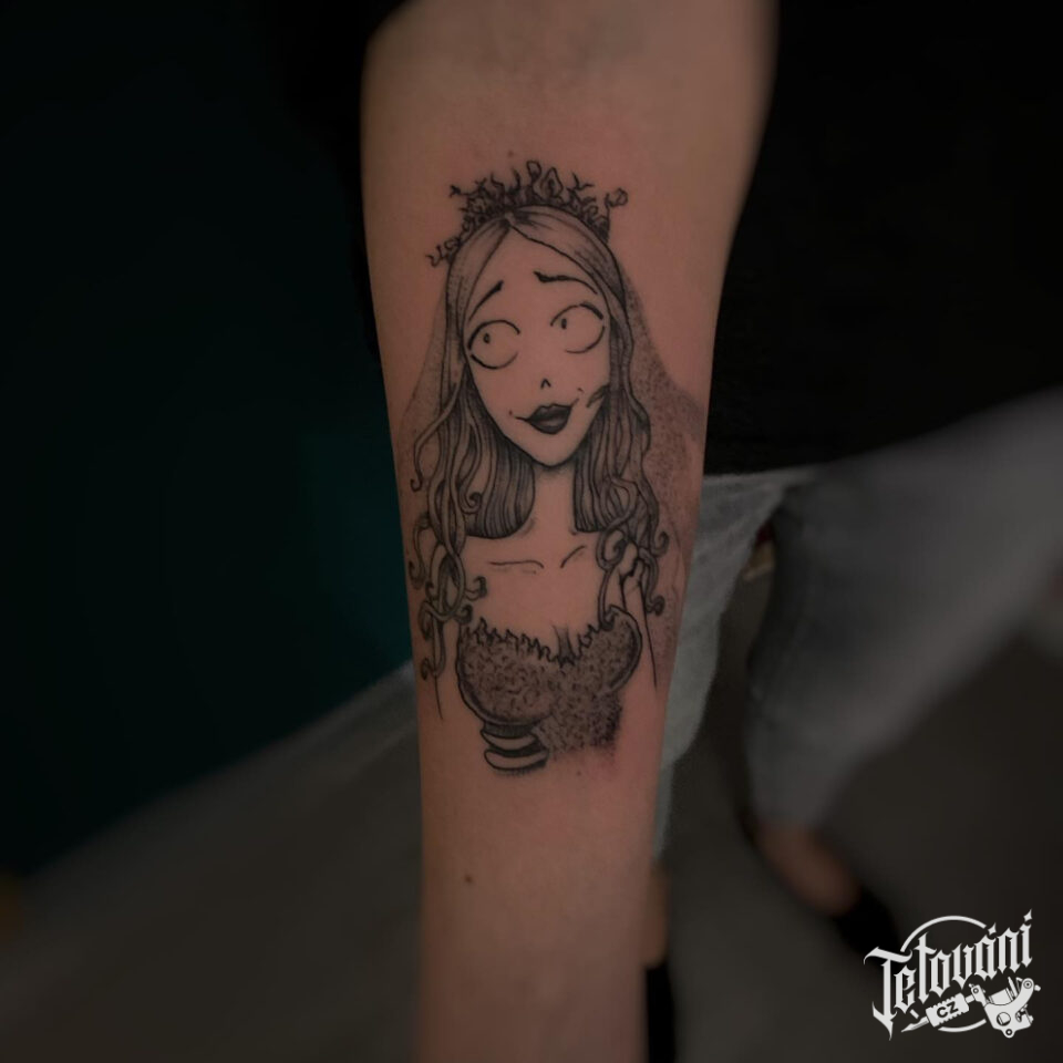Tetování Mrtvá nevěsta Tima Burtona z filmů a pohádek na předloktí