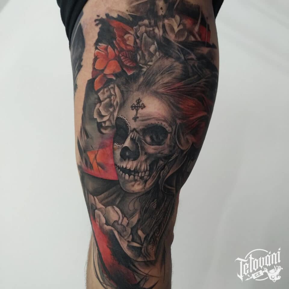 Tetování Muerte, květiny...