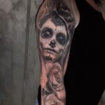Tetování muerte, květiny, růže, rukáv