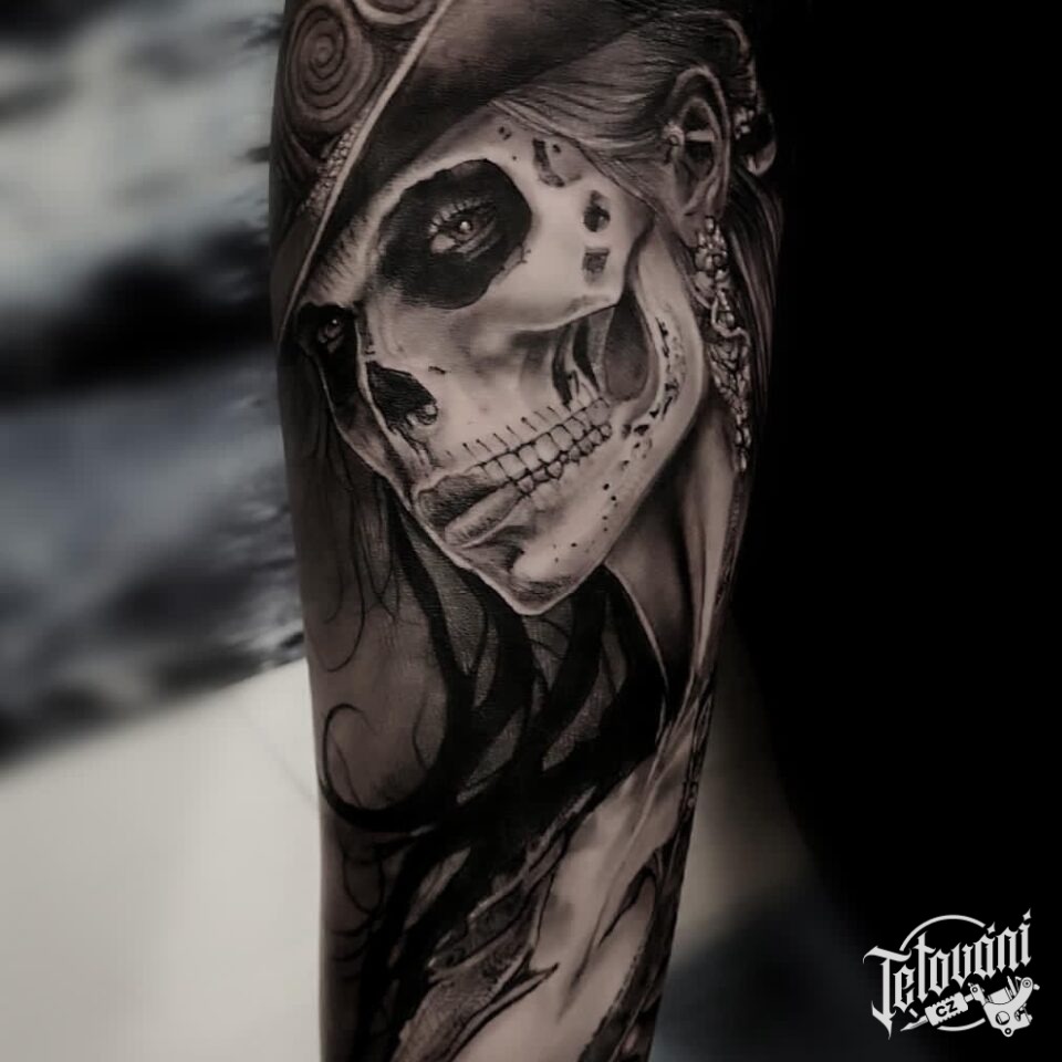 Tetování muerte žena na předloktí