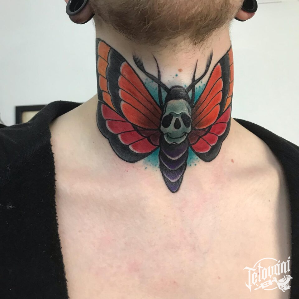Tetování můra na krku
