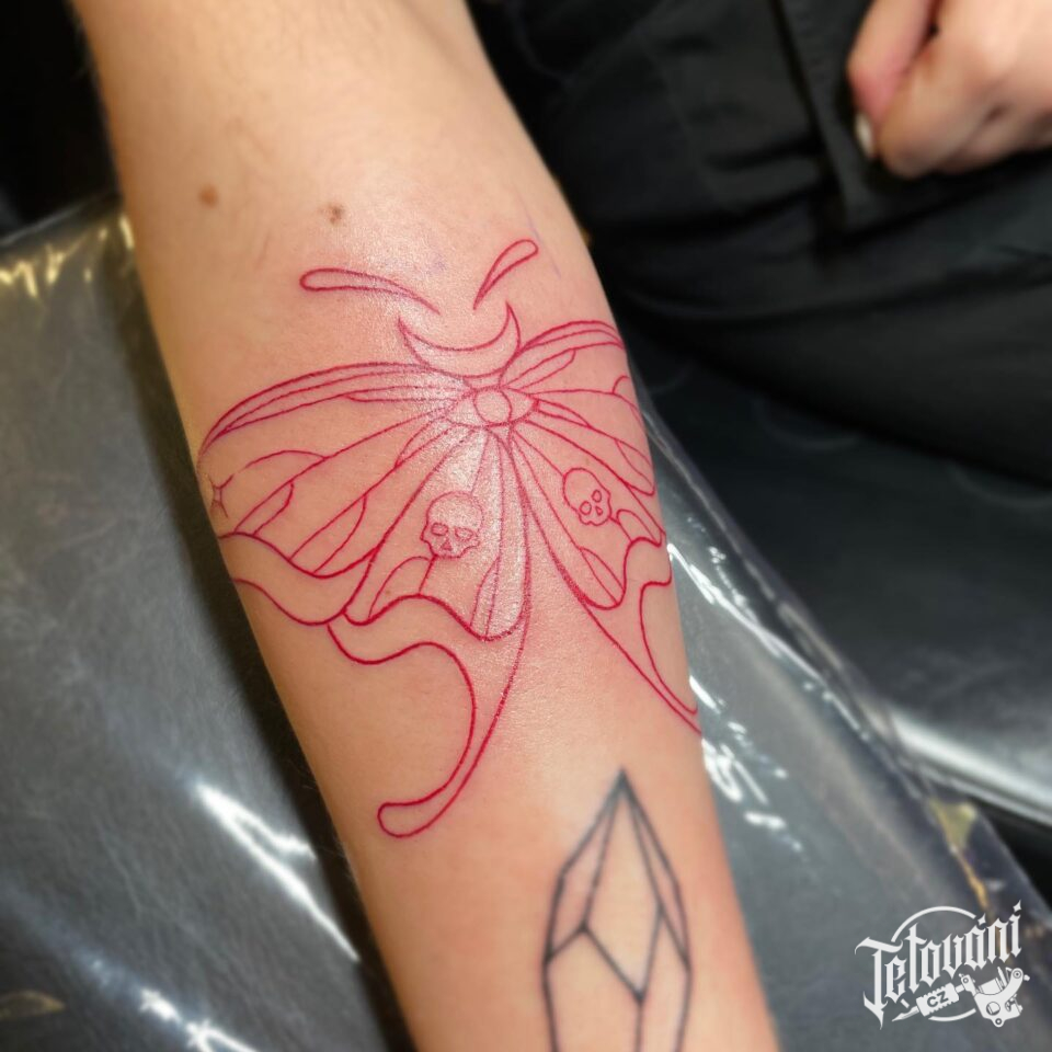 Tetování můra na předloktí