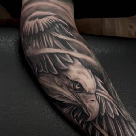 Tetování muž s křídly a zvíře orel na záda