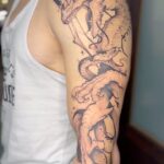 Tetování mýtická bytost a zvíře, drak a had na rameni