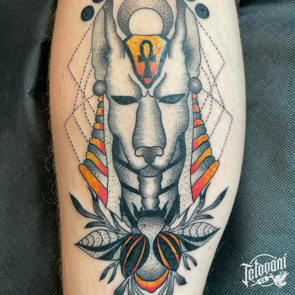 Tetování mýtická bytost Anu bis, egyptská mytologie na lýtko