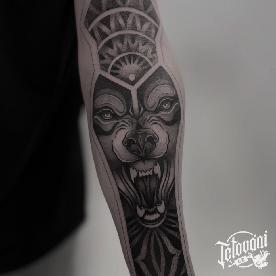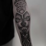 Tetování mýtická bytost Anu bis, egyptská mytologie na předloktí