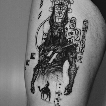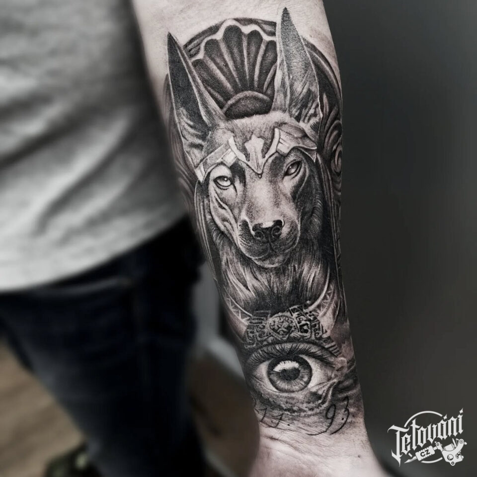 Tetování mýtická bytost Anu Bis, oko na předloktí