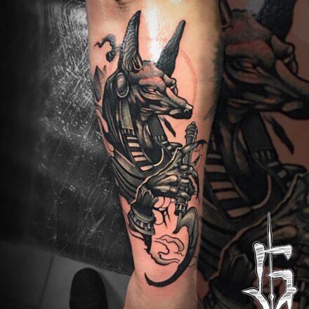 Tetování mýtická bytost, Anubis na rameni