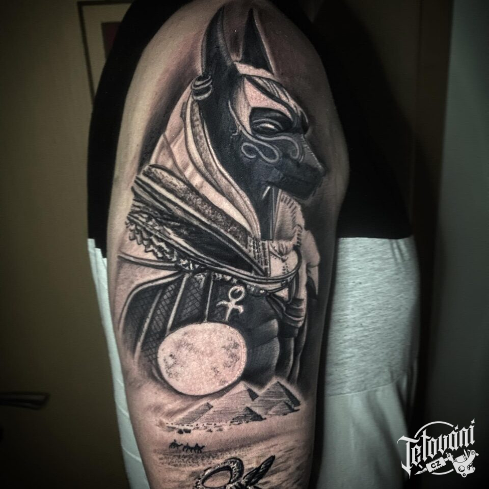 Tetování mýtická bytost, Anubis na rameni