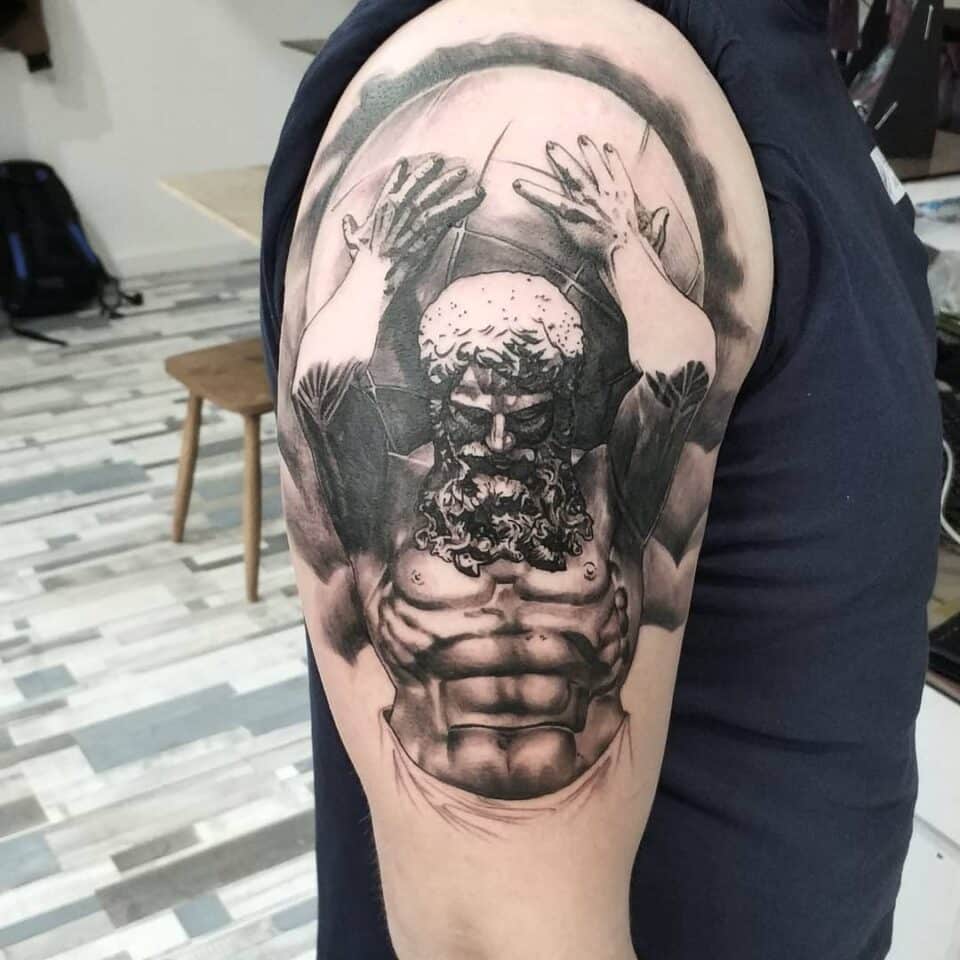 Tetování mýtická bytost Atlás na rameni