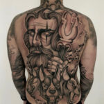 Tetování mýtická bytost bůh Neptun, mytologie starého Říma, zvířata psi na záda