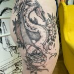 Tetování mýtická bytost drak na bok stehna