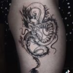 Tetování mýtická bytost, drak na bok stehna