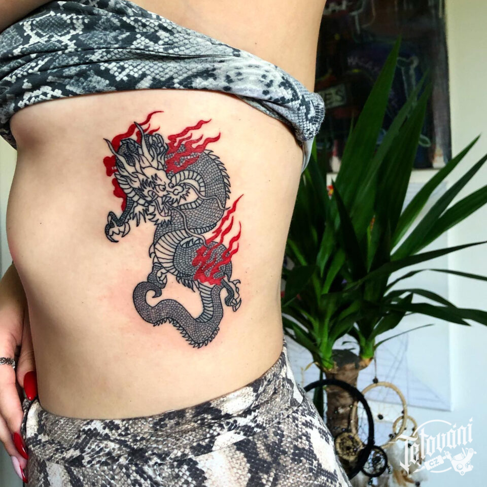 Tetování mýtická bytost, drak na boku