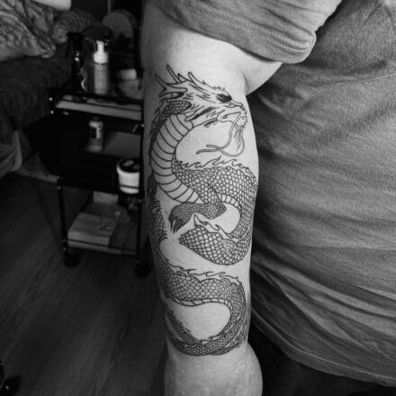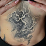 Tetování mýtická bytost, drak na břichu