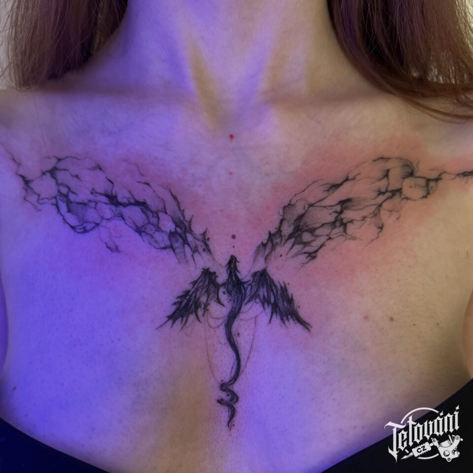 Tetování mýtická bytost, drak na hrudi