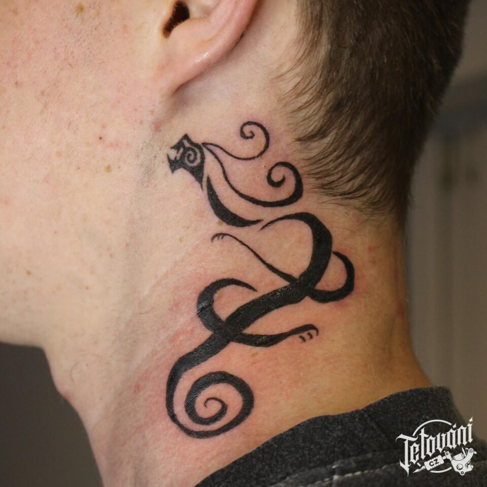 Tetování mýtická bytost, drak na krku