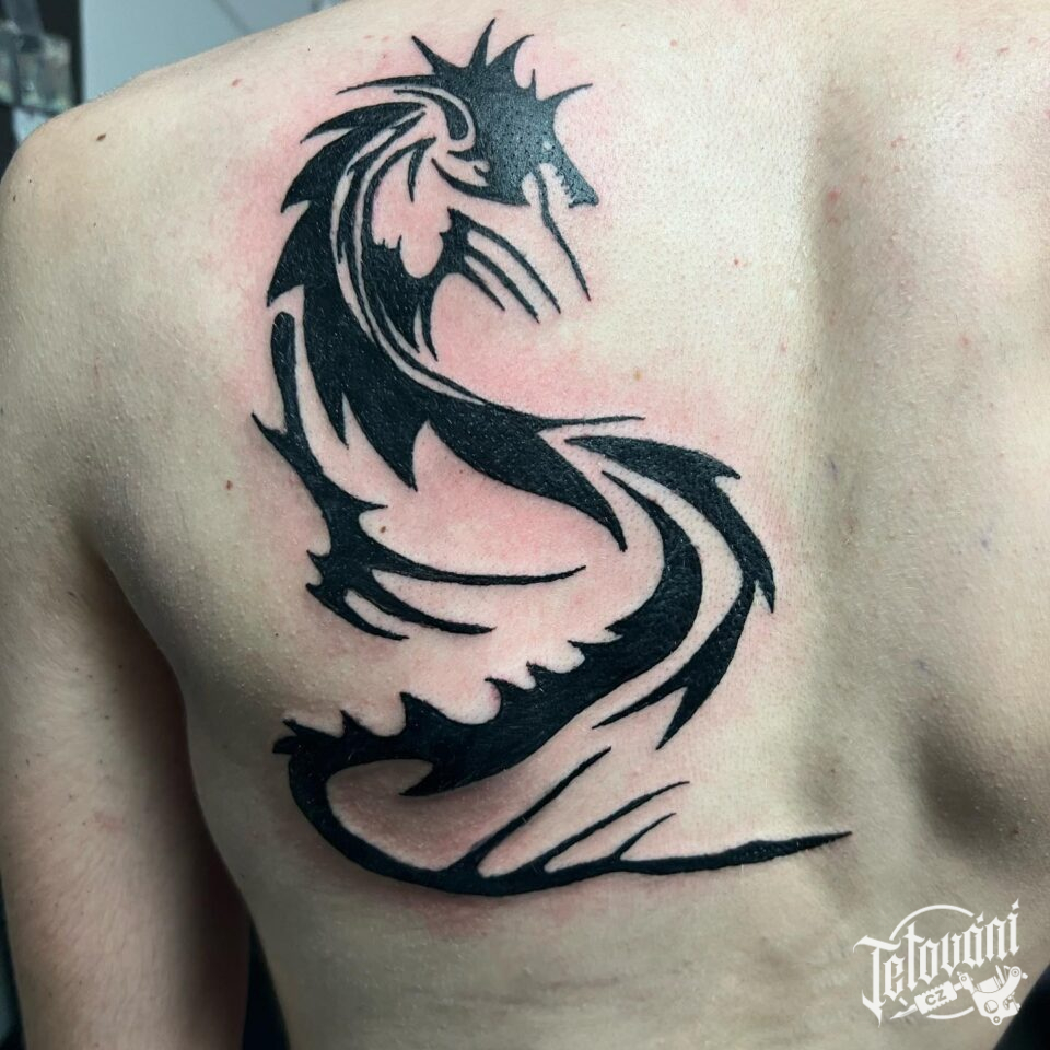 Tetování mýtická bytost, drak na lopatku
