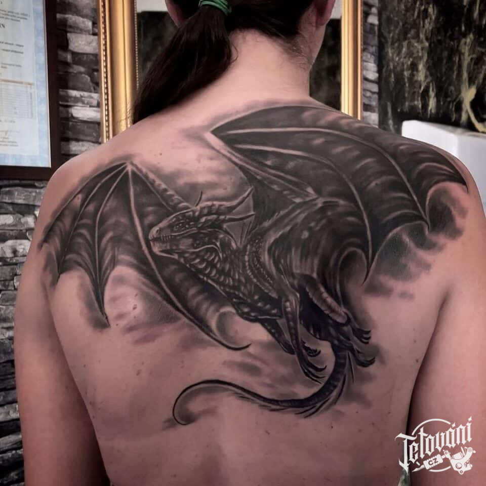 Tetování mýtická bytost drak na lopatky