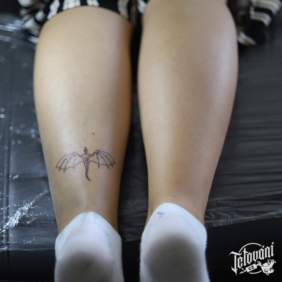 Tetování mýtická bytost drak na lýtko