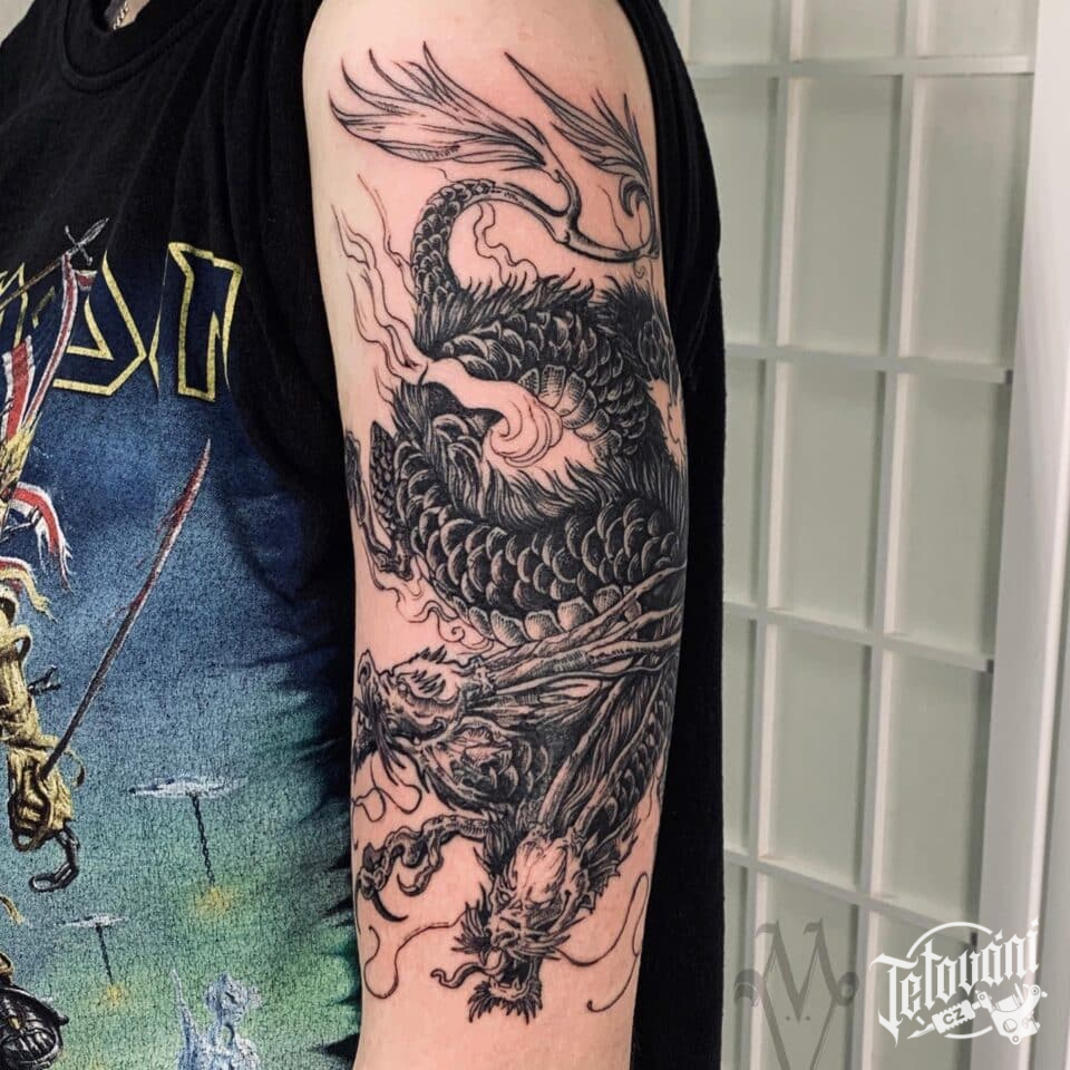 Tetování mýtická bytost, drak na paži