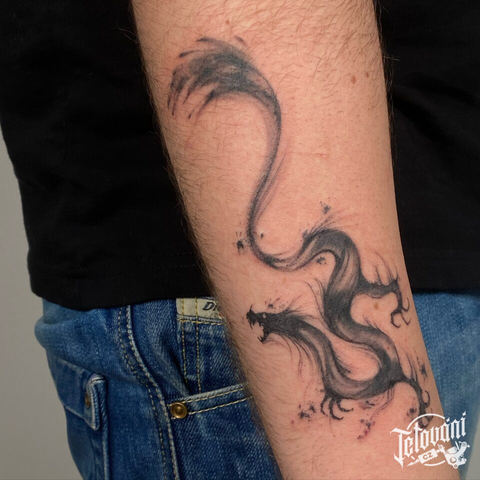 Tetování mýtická bytost, drak na předloktí
