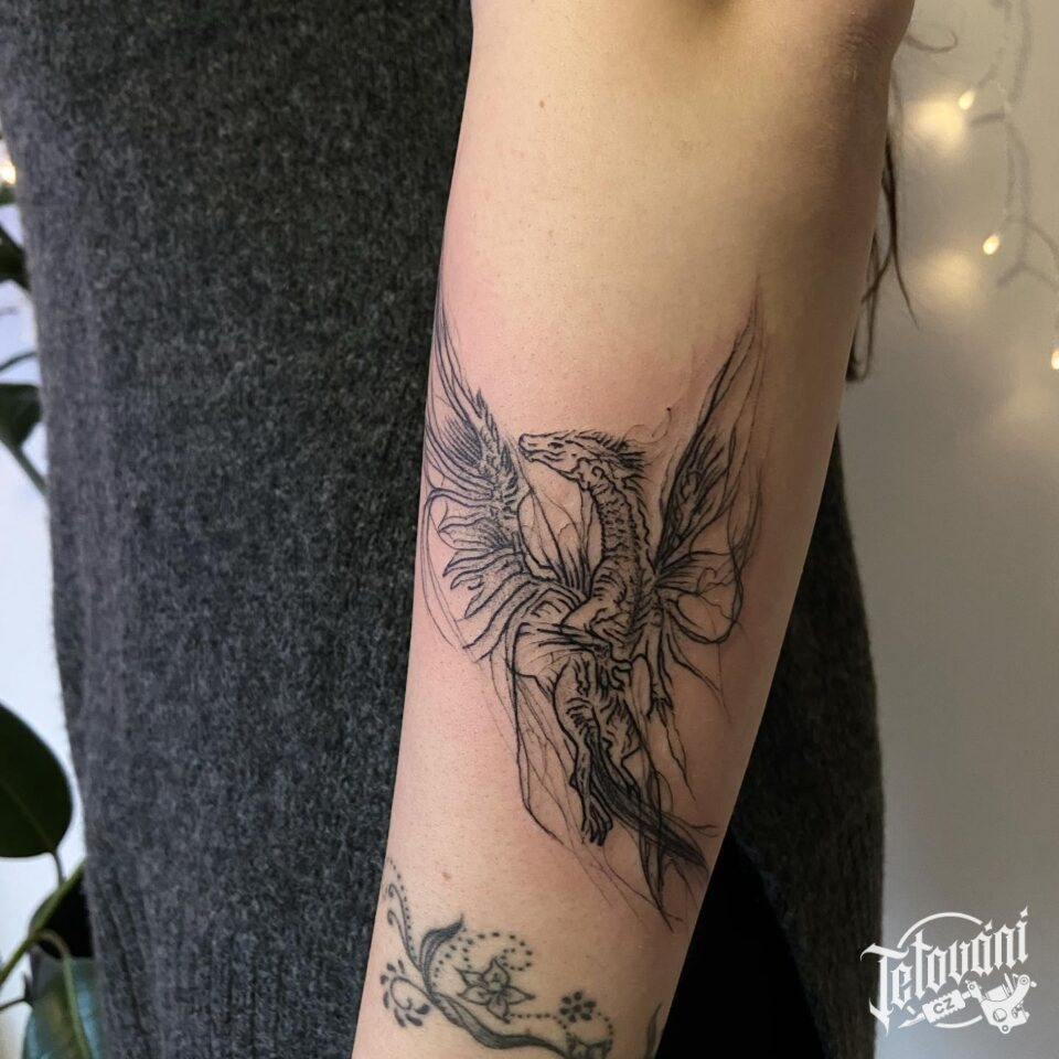 Tetování mytická bytost, drak na předloktí