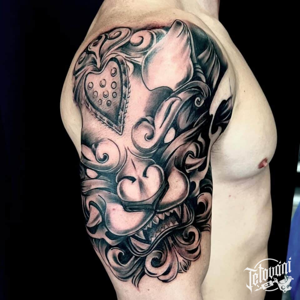 Tetování mýtická bytost, drak na rameni