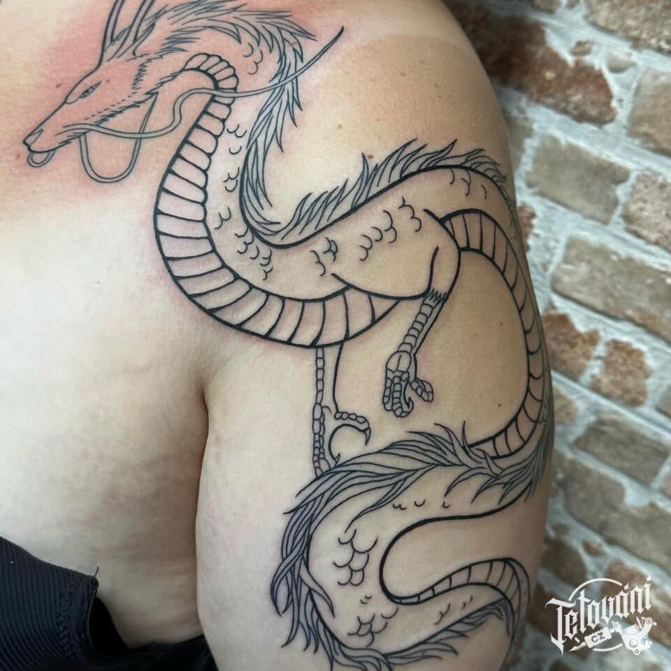 Tetování mýtická bytost drak na rameno
