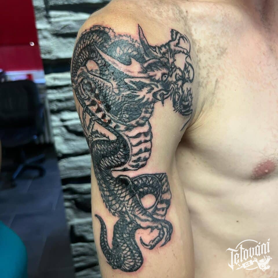 Tetování mýtická bytost drak na rameno