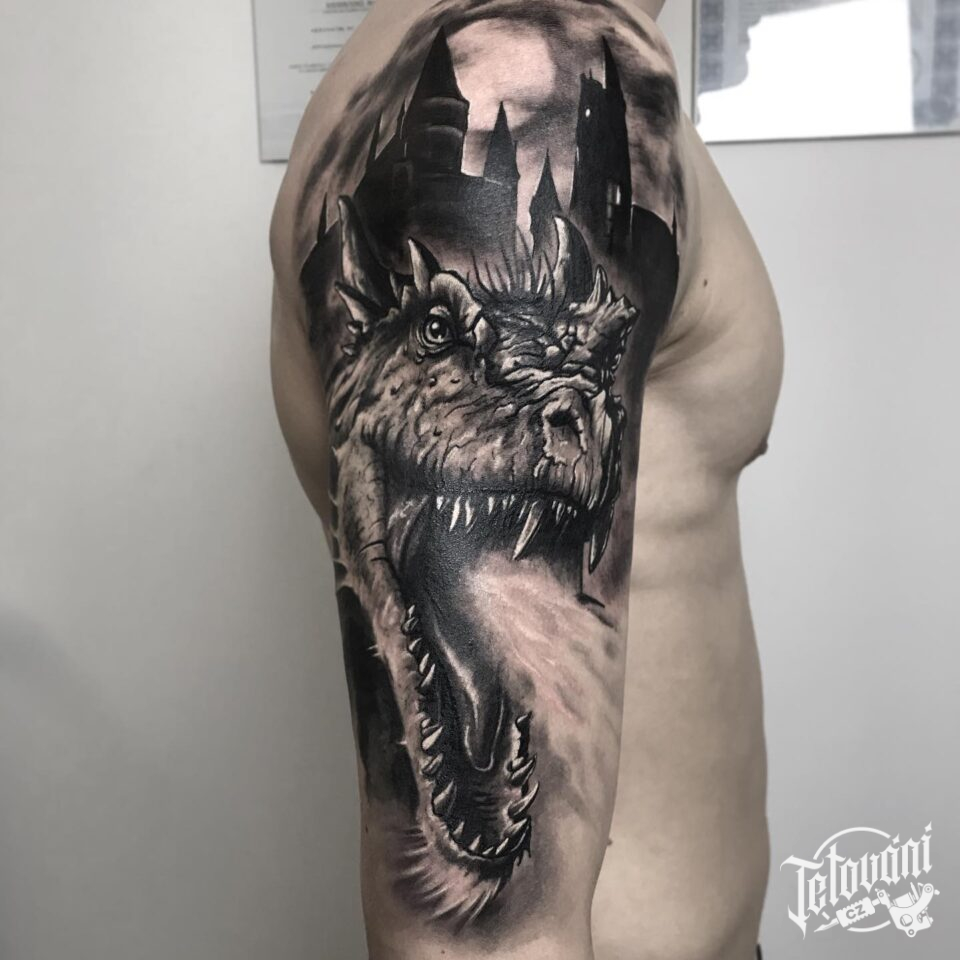 Tetování mýtická bytost drak na rameno